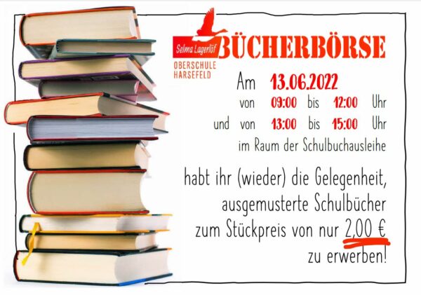 Am 13.06.2022 findet unsere Bücherbörse statt. Weitere Informationen finden Sie auf dem Bild.