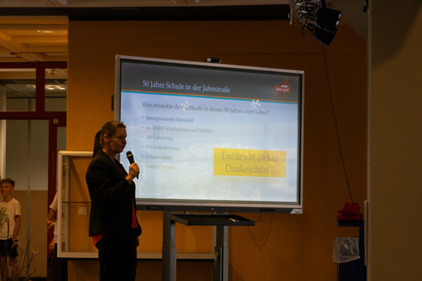 Wir bedanken uns bei allen Gästen, Schülern und dem gesamten Kollegium für eine gelungene Jubiläumsfeier „50 Jahre Schule an der Jahnstraße“ Nach vielen „warmen“ Worten in unserer Aula und eine professionellen Bewirtung durch unsere Cafeteria der Schülerfirma SchArF unter der Leitung von Heike Lambrecht-Schulze, war die Schule zwischen 11:15 Uhr und 13:00 Uhr für Eltern und Gäste geöffnet.